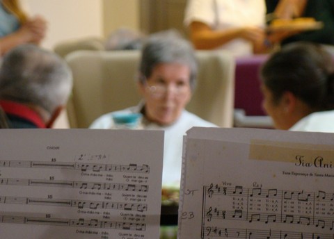 O Porto de Abrigo está a participar no projeto "A Casa vai a Casa", um serviço de música ao domicílio da Casa da Música, concebido para grupos que não podem deslocar-se à Casa da Música sob o lema "Convidem-nos que nós vamos". O que está a acontecer em cada sessão é extraordinário! Vemos pessoas a tocar violino imaginário e a levantar os braços como nunca o fazem, a tocar piano imaginário, a marcar o ritmo, a vibrar, a cantar, a trautear... com o entusiasmo e dedicação que se tem quando as limitações da saúde e da idade não fazem parte das preocupações.